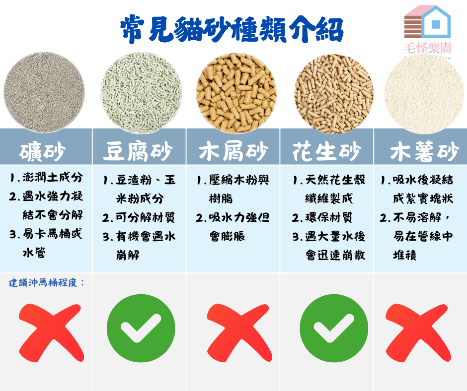 缺點:不同品牌配方差異大(是否為純木薯、是否混合豆腐、顆粒形狀條型/仿礦型),挑選時需看清楚成分與顆粒型態。