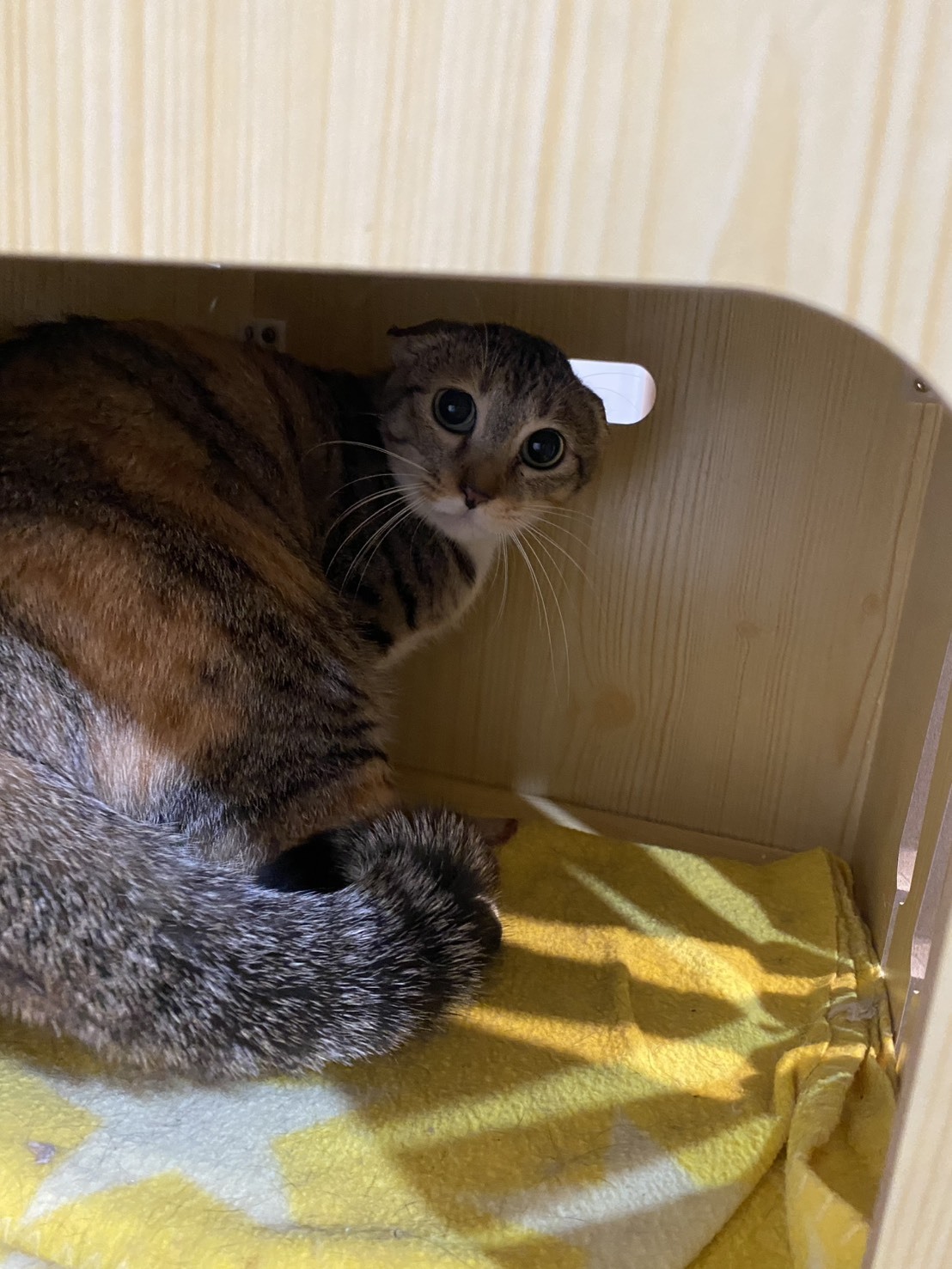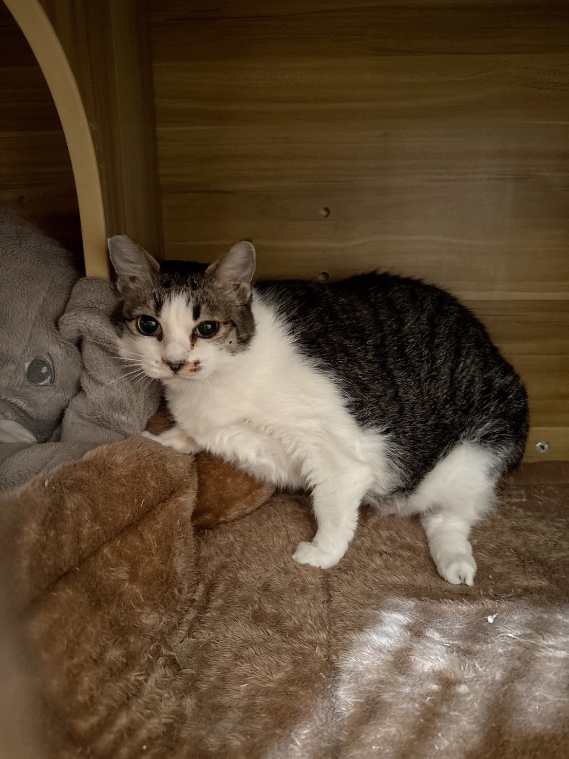 ![]() | 貓咪名稱:靜香 晶片號碼:900073000240037 犬/貓:貓 歲數:5歲 性別:母 品種:小步舞曲(拿破崙短腿貓) 驅蟲:是,有定期驅蟲 絕育:是,已絕育 預防針:是,有注射預防針 病史:1131106牙周手術,1140711口腔手術,關節退化,醫生建議限制運動 毛孩簡短介紹:腳短,但走路很快,喜歡逗貓棒 | |