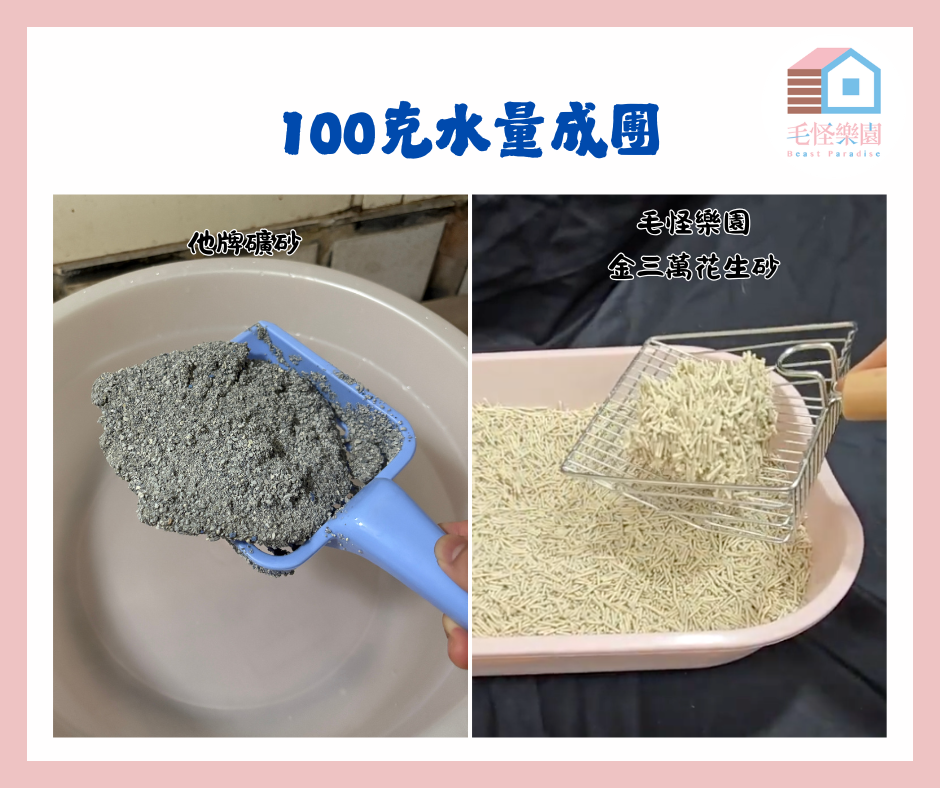 各倒100g水量到礦砂跟花生砂中,實驗開始啦!