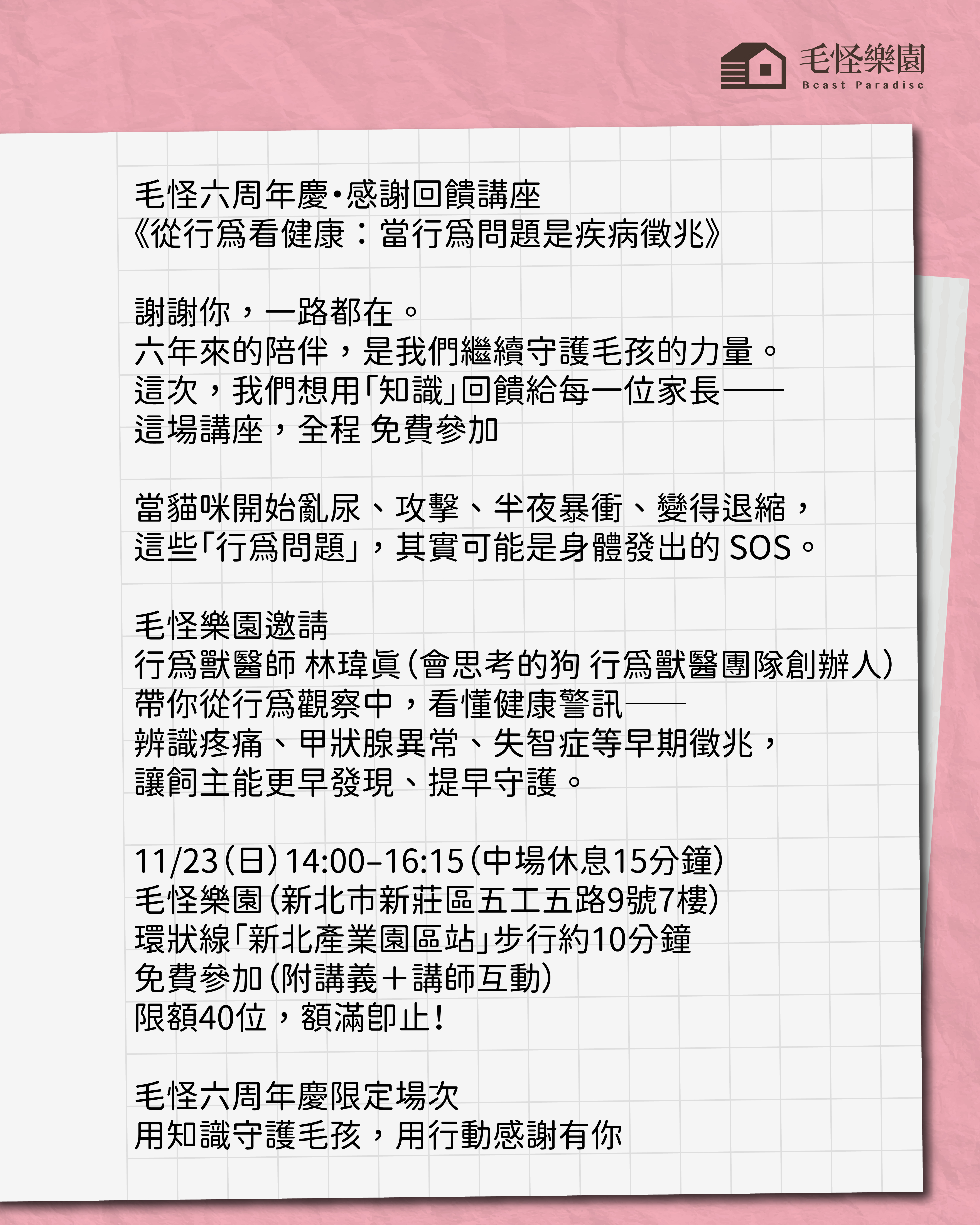 毛怪六周年慶・感謝回饋講座