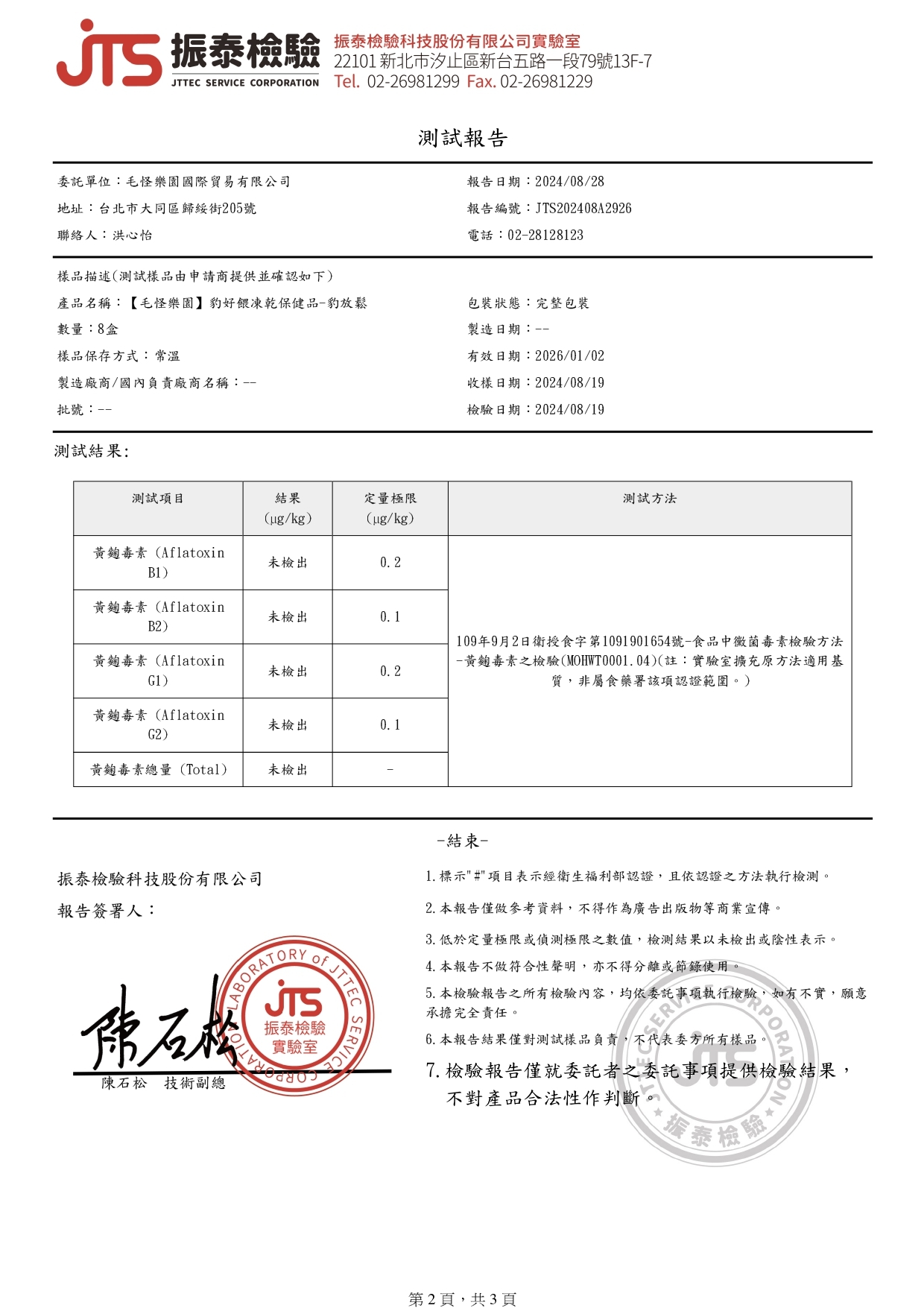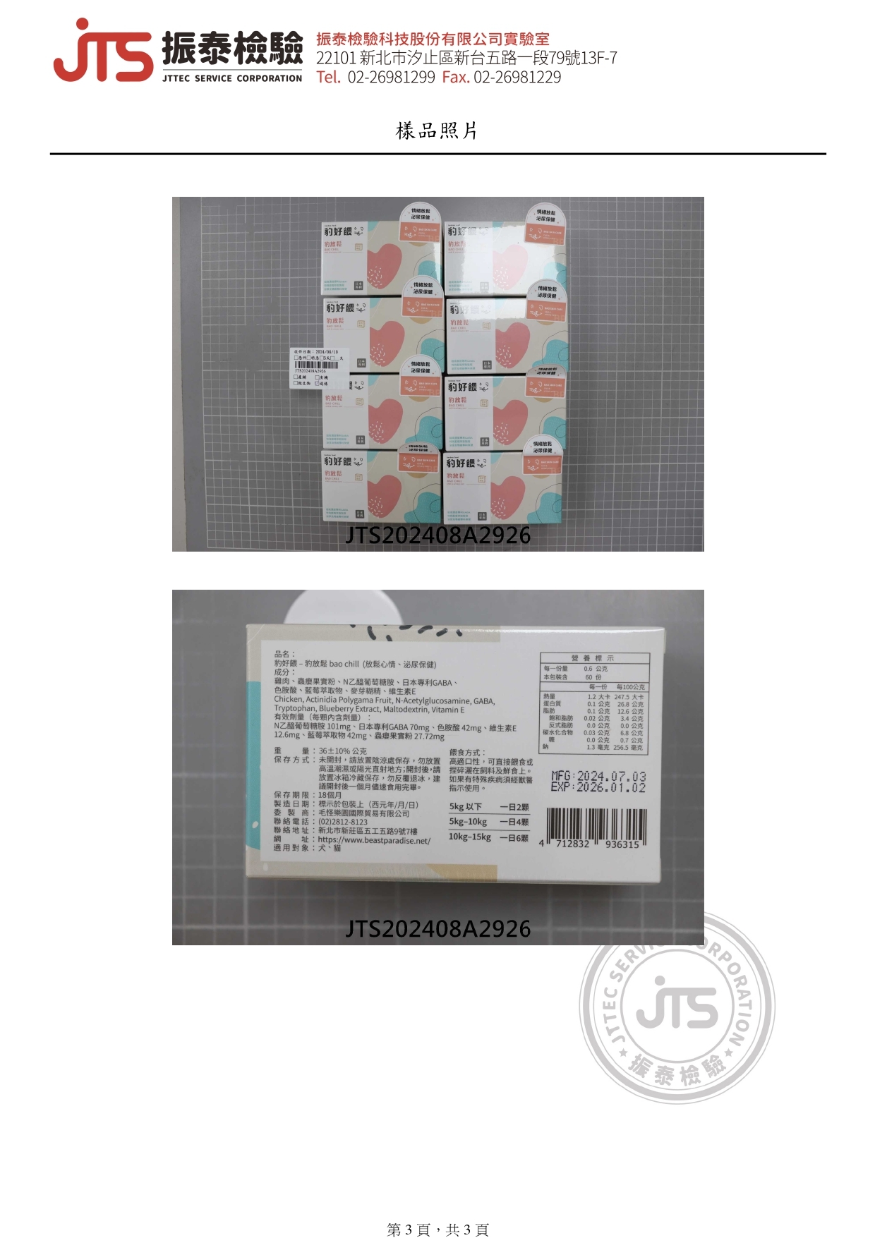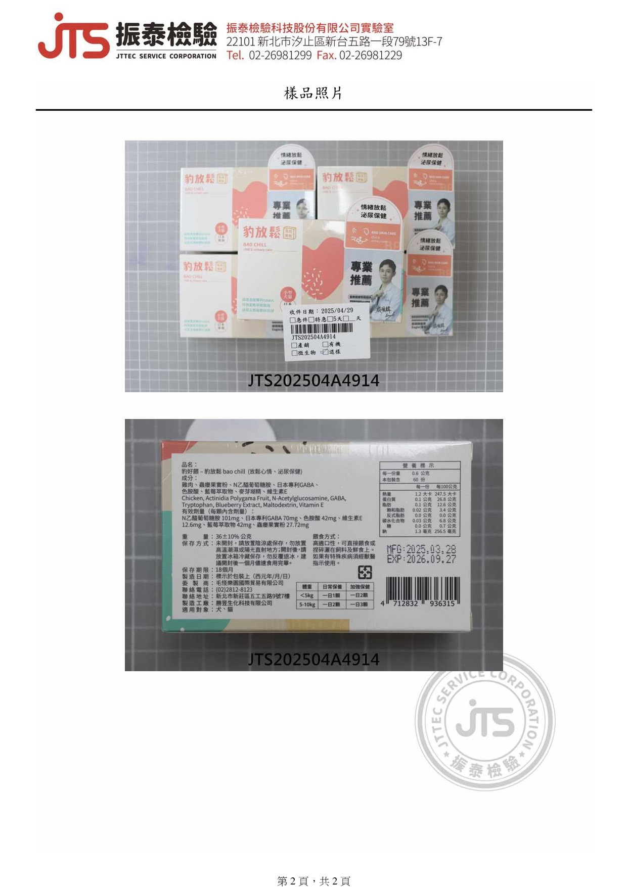 【檢驗報告】豹好餵凍乾保健品 - 豹放鬆(放鬆心情、泌尿保健)