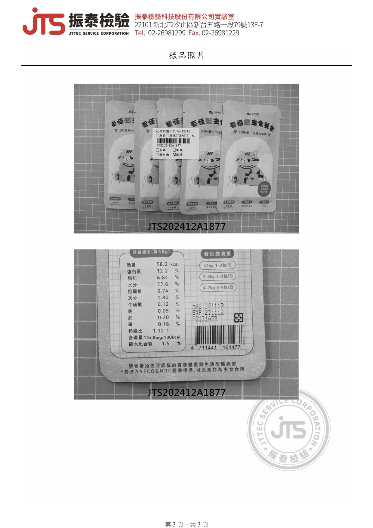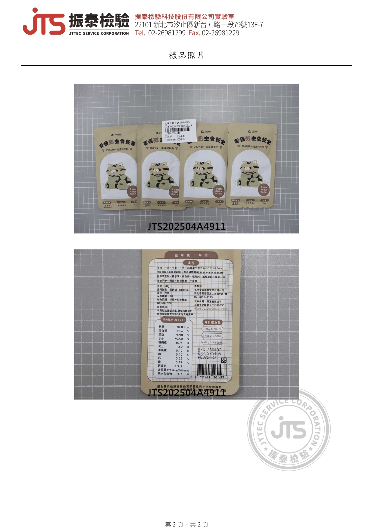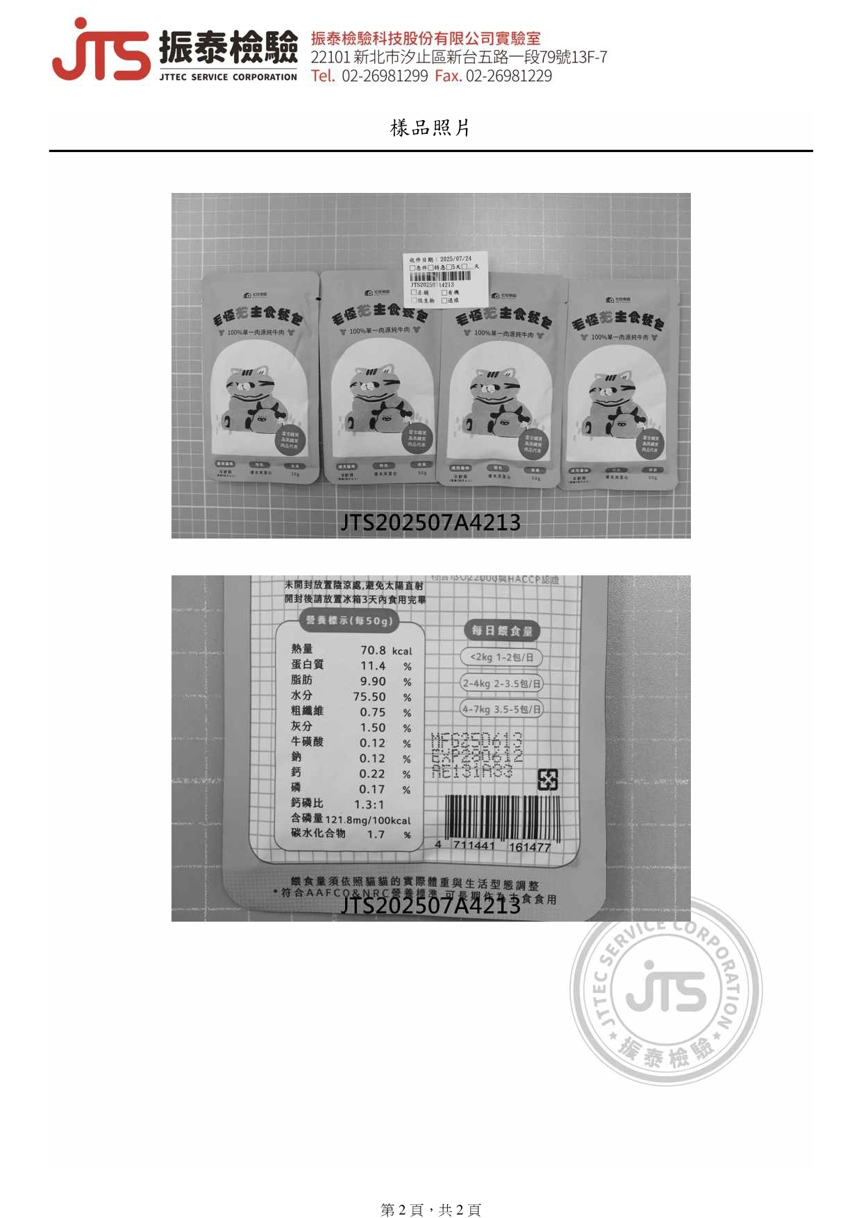 【檢驗報告】金單純單一肉源貓主食餐包-牛肉