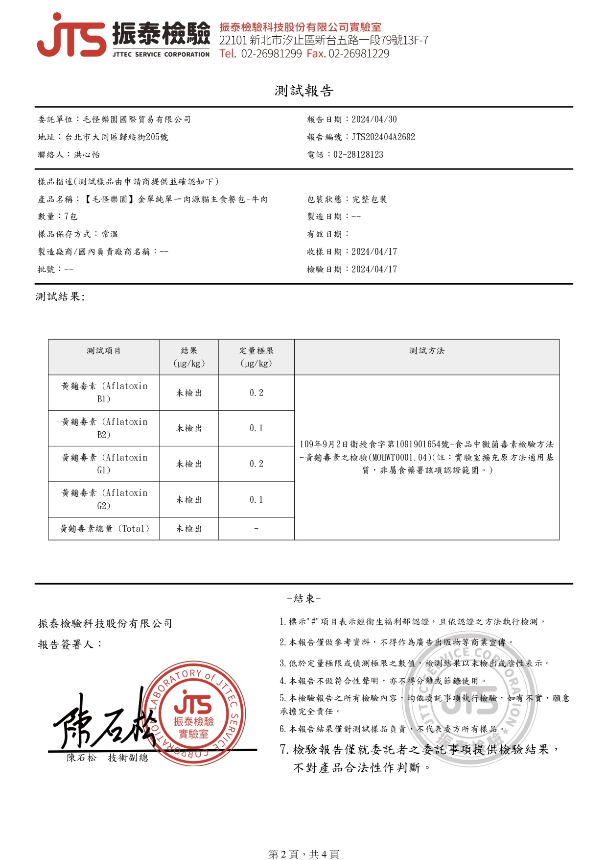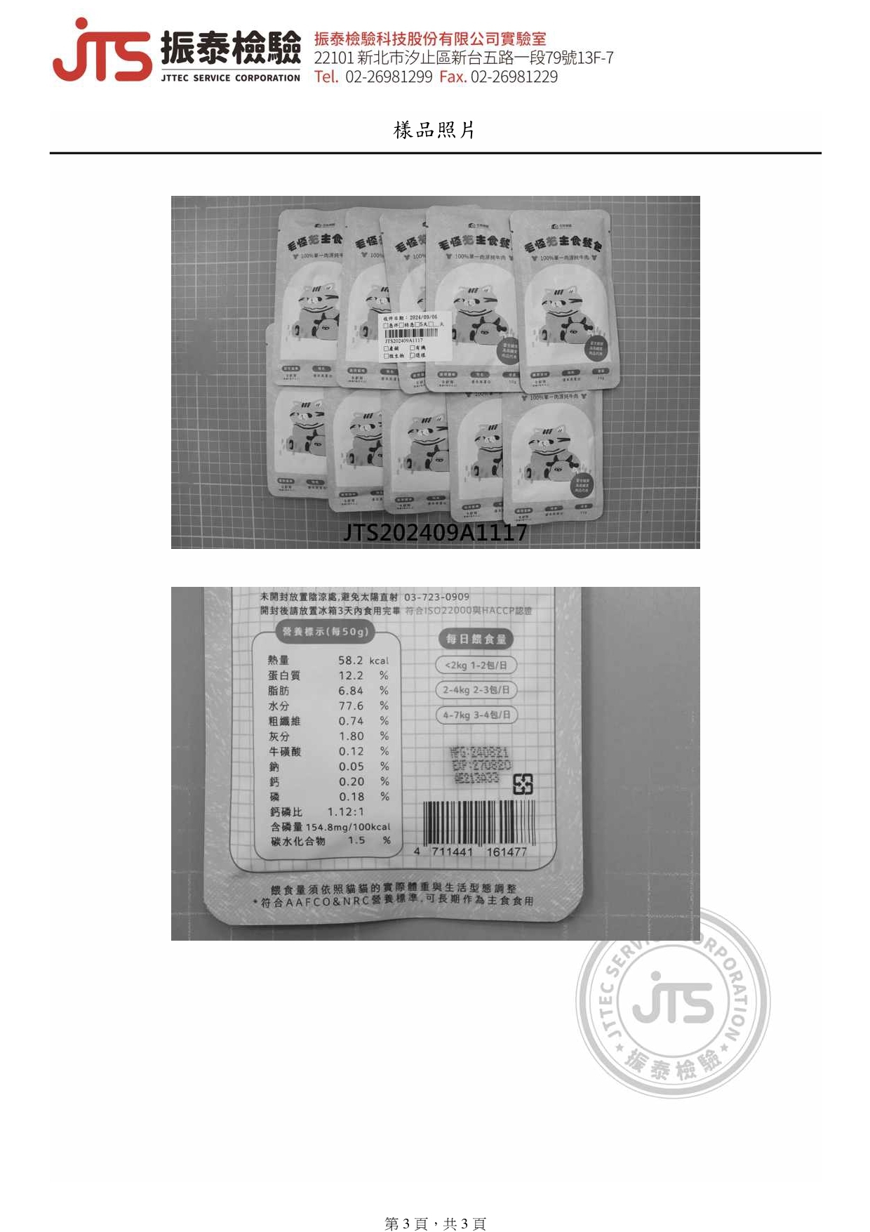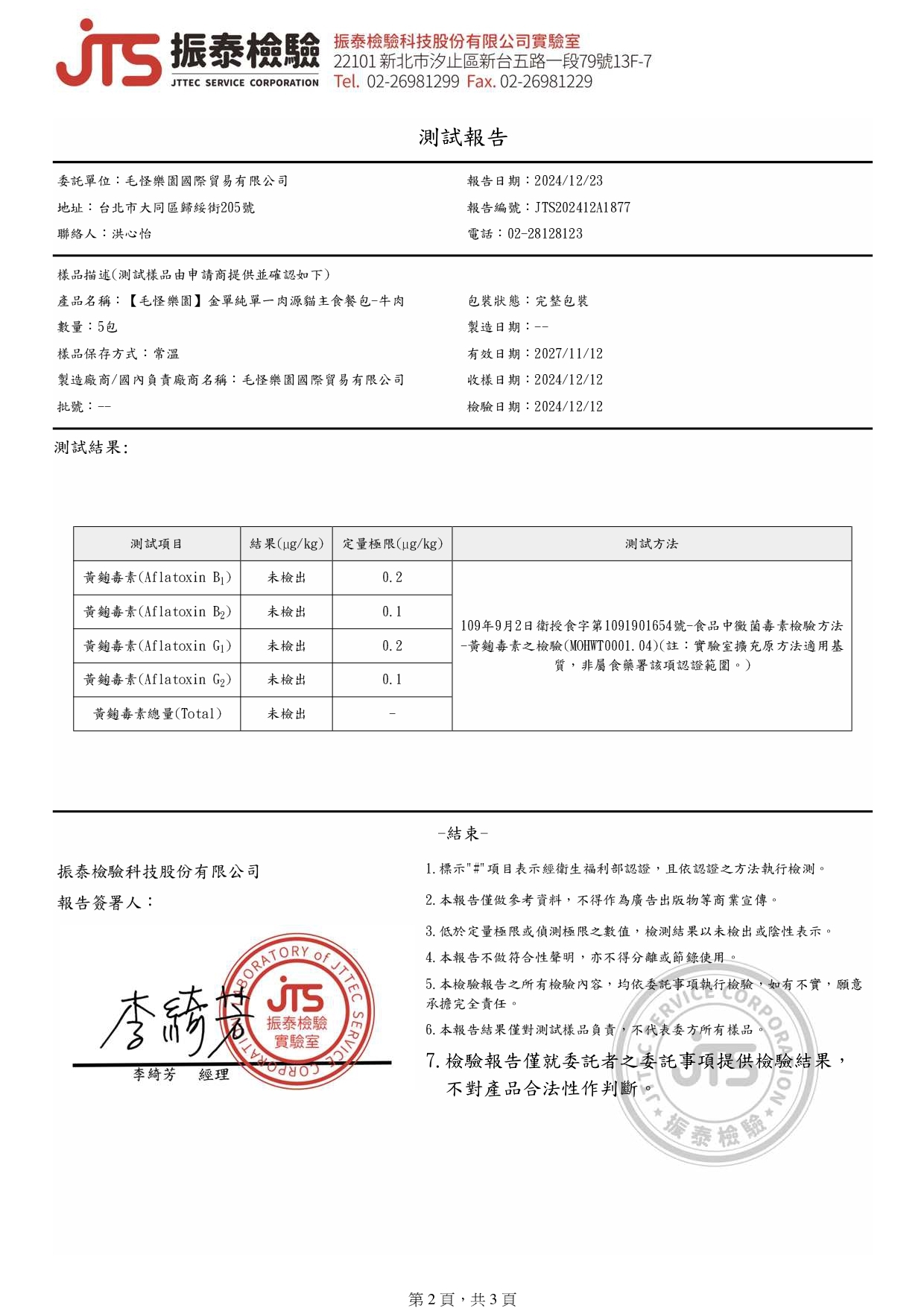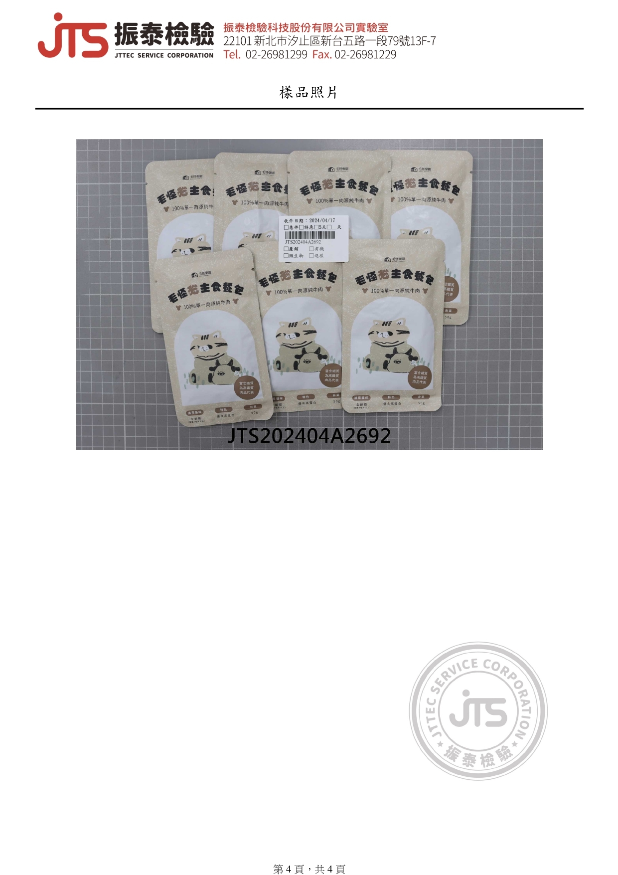 【檢驗報告】金單純單一肉源貓主食餐包-牛肉