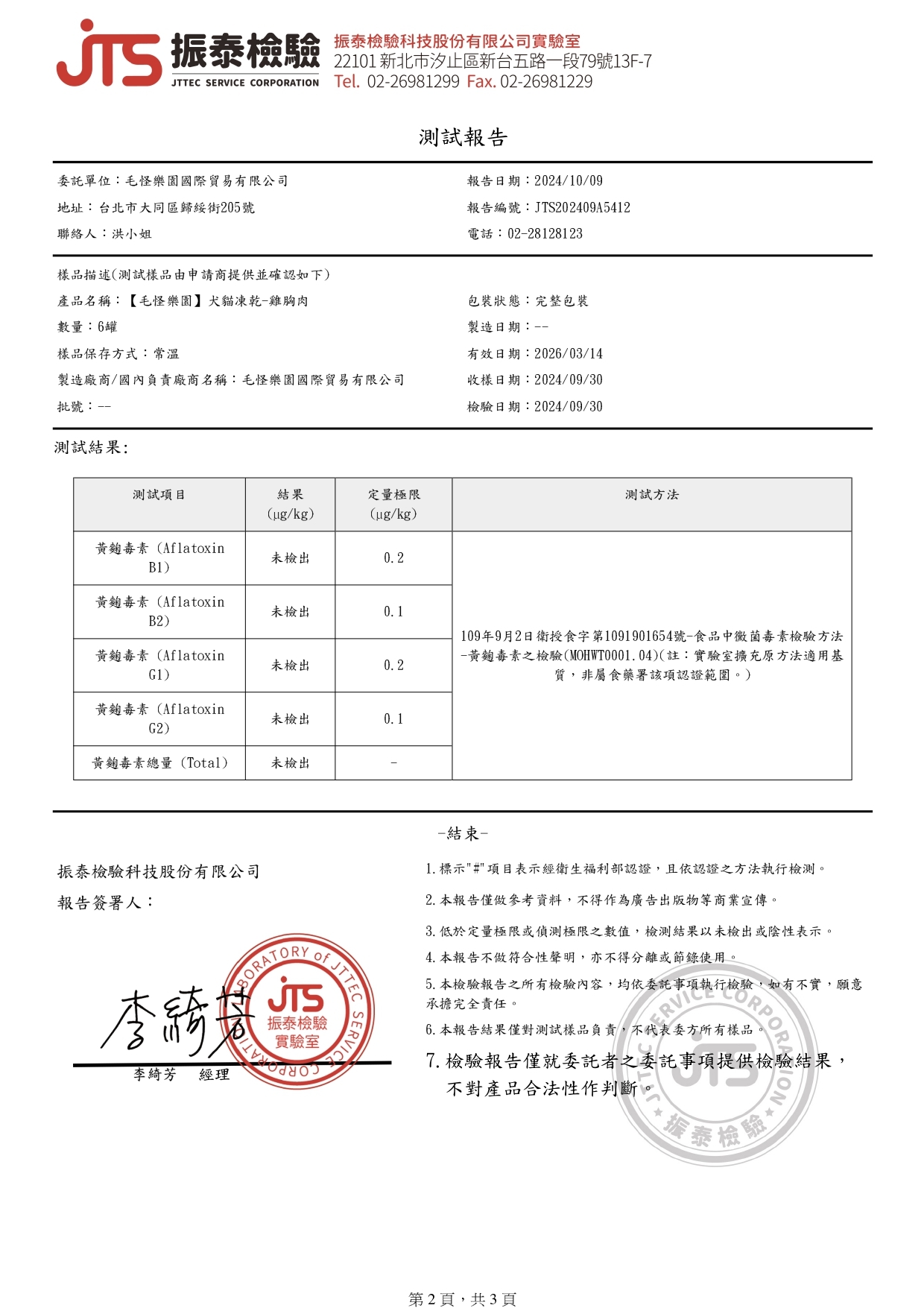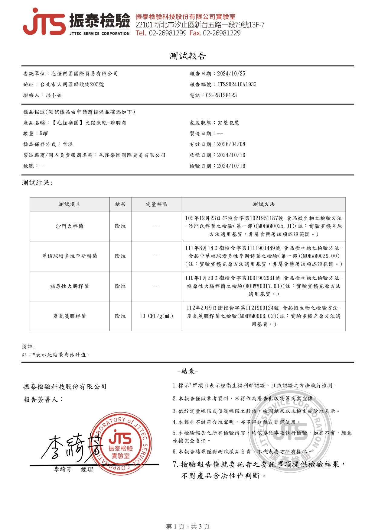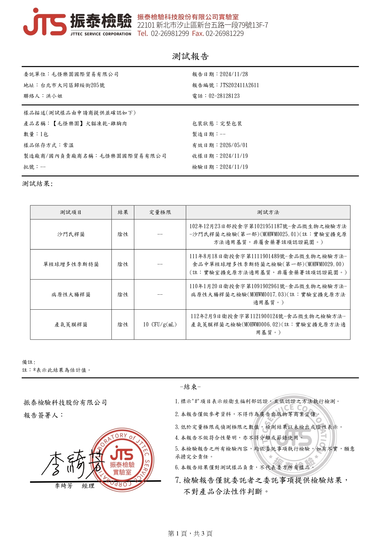 【檢驗報告】毛怪犬貓凍乾 - 雞胸肉