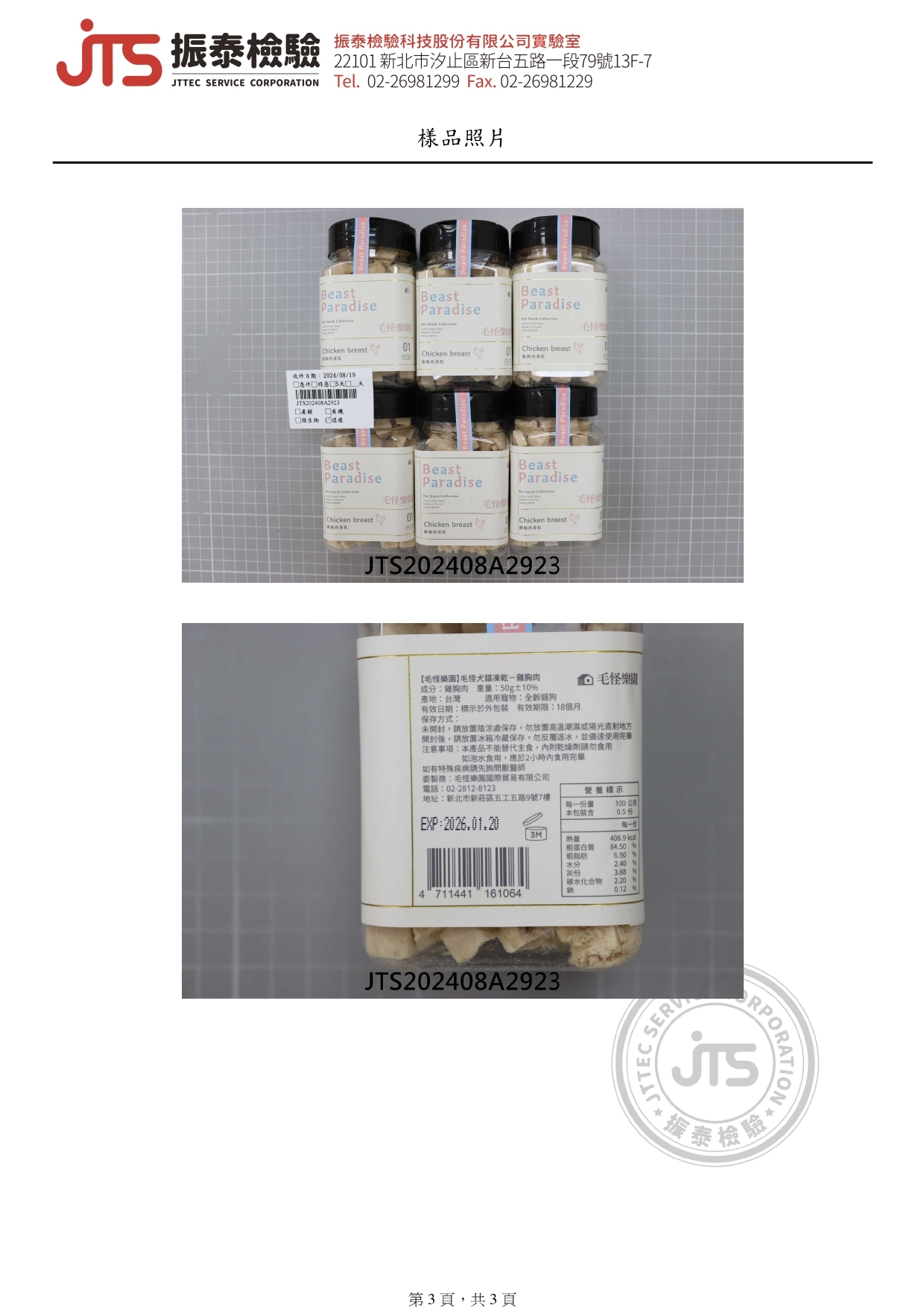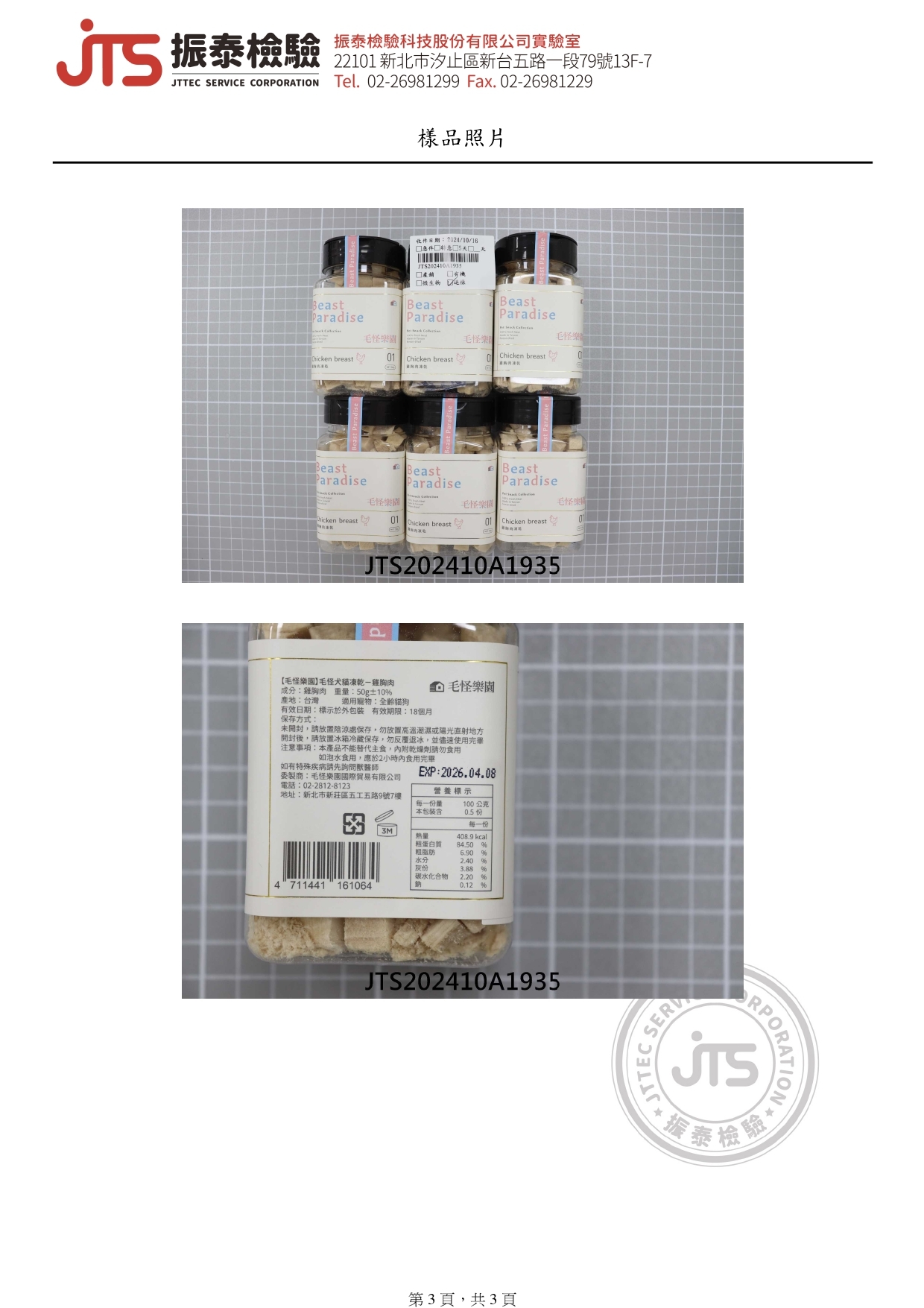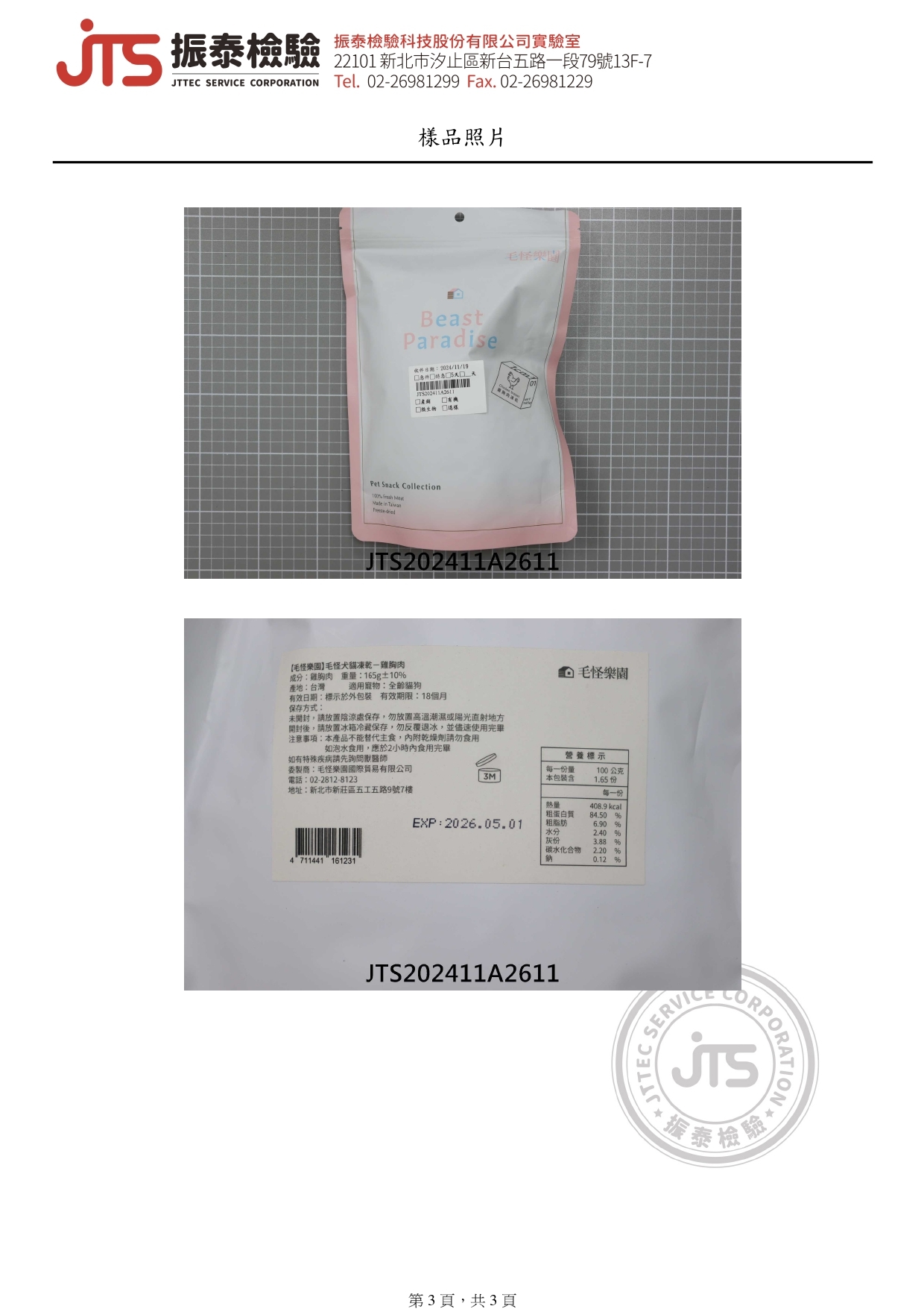 【檢驗報告】毛怪犬貓凍乾 - 雞胸肉