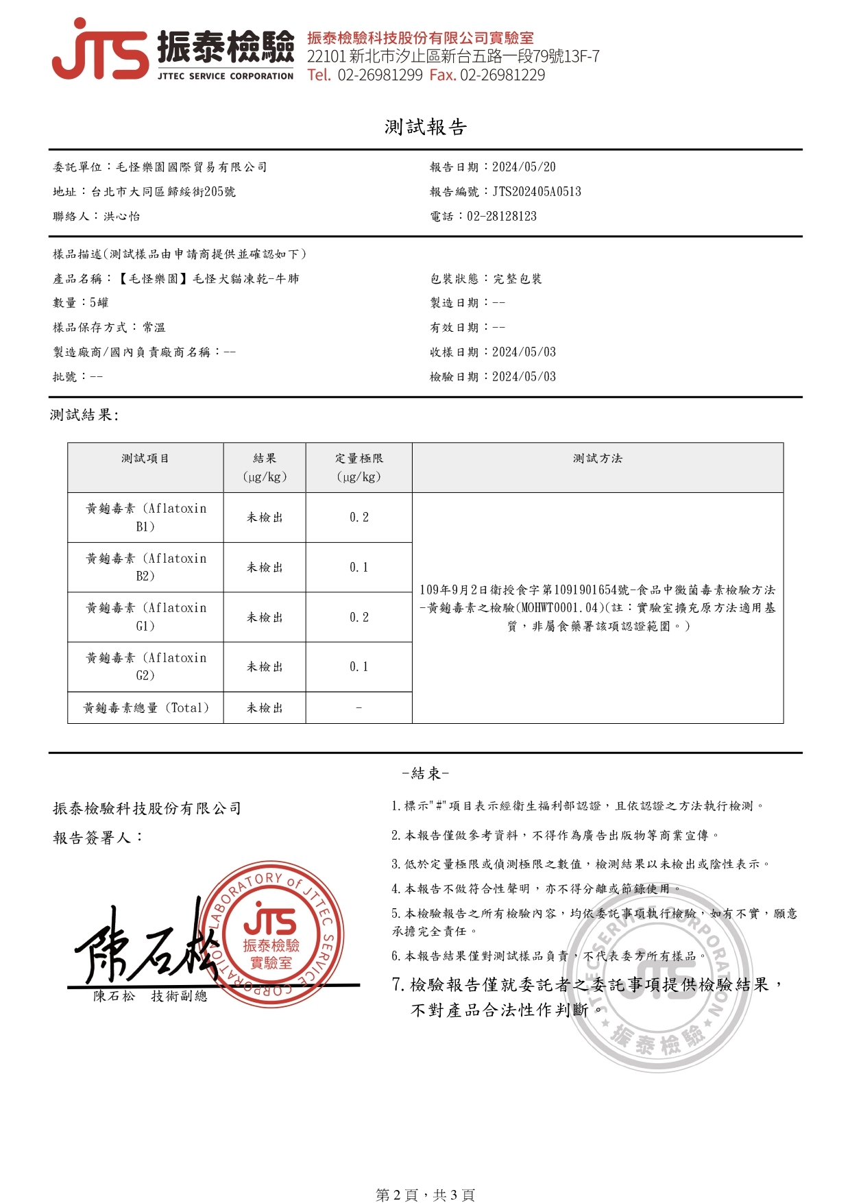 【檢驗報告】毛怪犬貓凍乾 - 牛肺