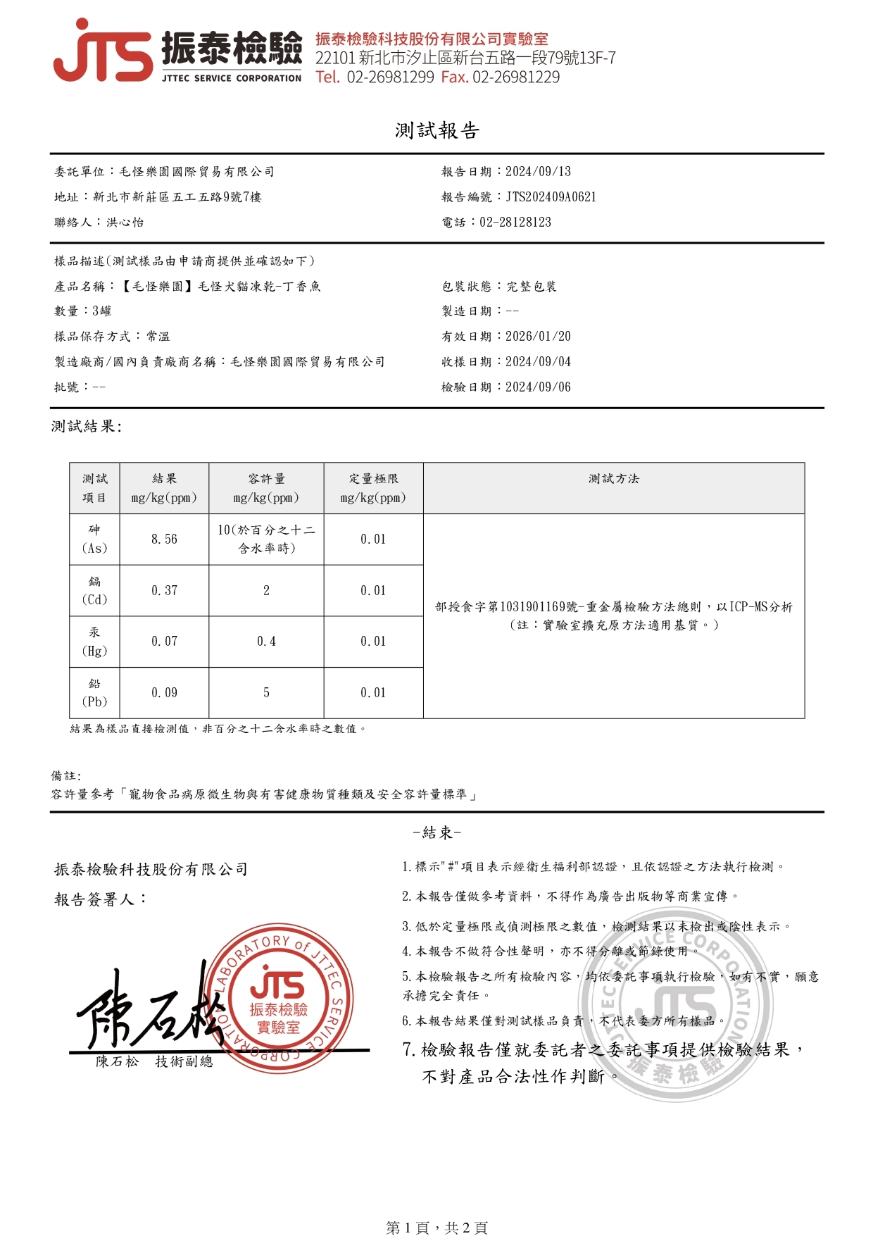 【檢驗報告】毛怪犬貓凍乾 - 丁香魚